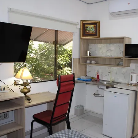 På rummet finns plattskärms-TV med satellitkanaler och flerkanals TV samt minibar. En bidé, en separat toalett och en dusch tillsammans med vattenkokare, kylskåp och köksredskap finns i rummen.